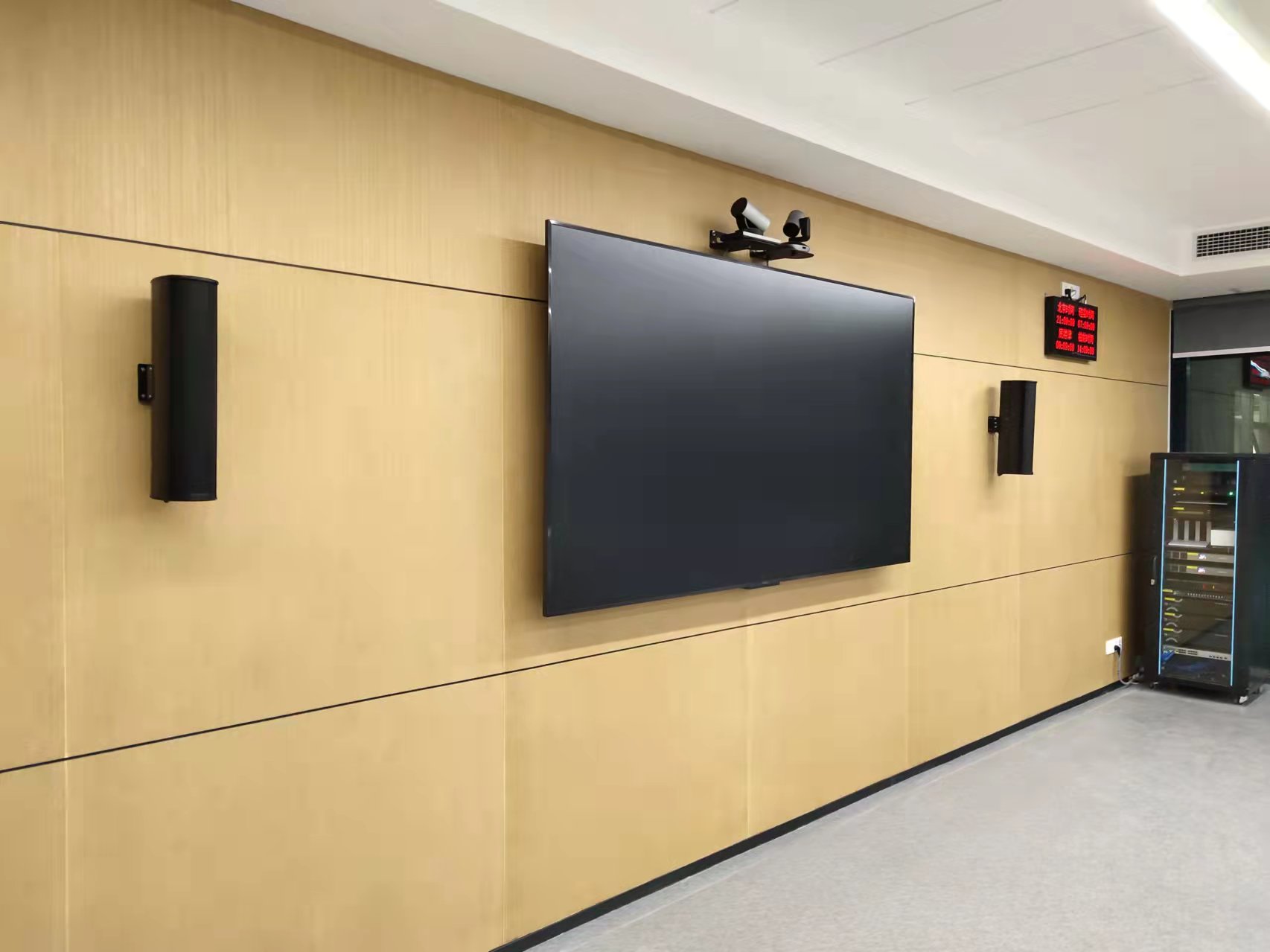 2.裝修表面平滑,未考慮會議室聲學(xué)裝飾,房間布局較空曠,因此加大了聲能反射及房間混響時(shí)間,在揚(yáng)聲器選型和擺位方面要求更為專業(yè)。